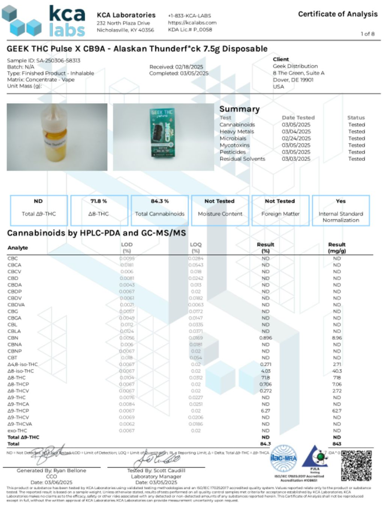 Geek THC Pulse THCa Sugar VVS Blend Disposables contain an ultra-potent 7.5g blend of THCa Sugar, Delta 9 THC, Delta 6 THC, Delta 9 THCP, and mouthwatering terpenes for flavor enhancement.