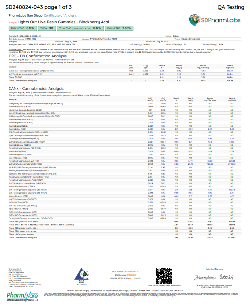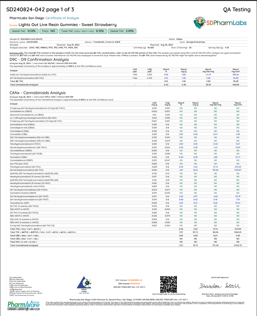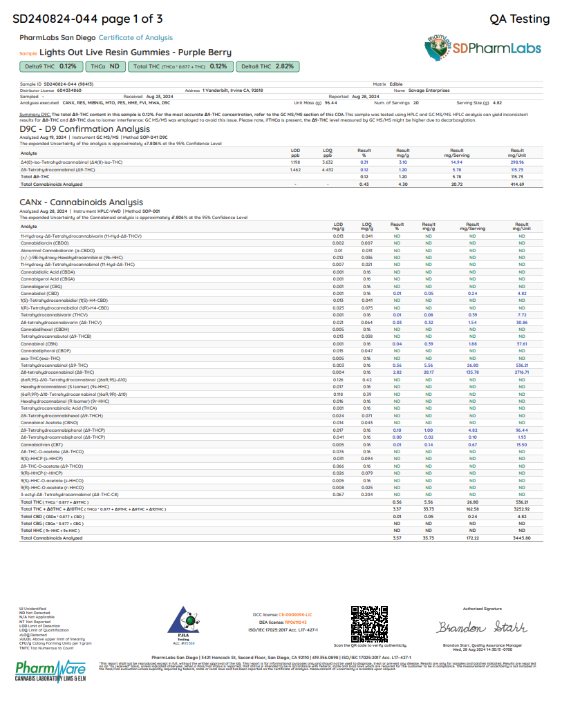 Corn Syrup, Sugar, Purified Water, Pectin, Delta-10 THC (1400mg/container, 70mg/serving), THC-JD (100mg/container, 5mg/serving), Delta-9 THC (100mg/container, 5mg/serving), THCh (100mg/container, 5mg/serving), THCP (50mg/container, 2.5mg/serving), Natural & Artificial Flavoring, Citric Acid, Sodium Citrate, Natural & Artificial Coloring.