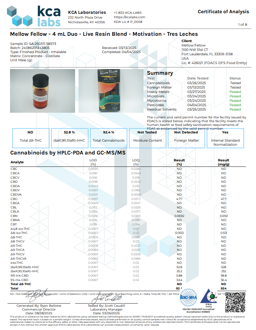 Indulge in a balanced experience with 2 disposable carts in one pack- our Motivation and Recover live resin carts duo. When you feel like you need an extra push, you can enjoy a surge of focus and energy with Motivation in Tres Leches. These Tres Leches HHC blend carts have a tasty sweet caramel flavor profile, with sugary citrus notes.